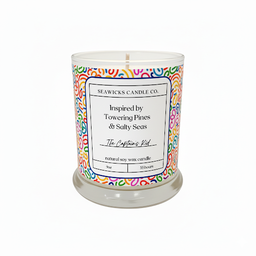 Crafted with natural soy wax and a cotton wick, this 9oz candle offers a clean, even burn and approximately 55 hours of delightful fragrance. Light "The Captain's Kid" and let the sweet, fruity aroma fill your home with warmth and happy memories.