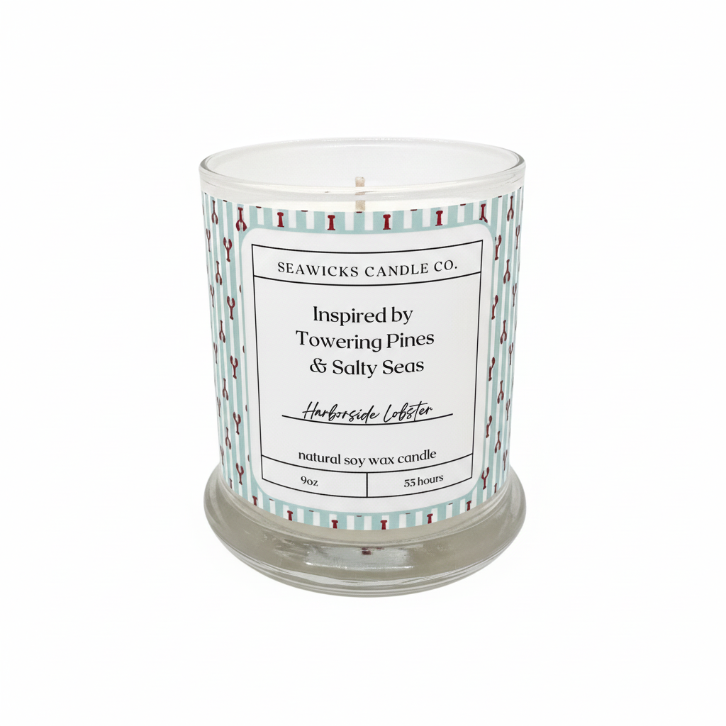 Revel in our Maine-inspired candle collection, embracing the aromas of nature. Relive the nostalgia of lobster shacks and dining by the harbor in the comfort of your own home! Our harborside lobster candle boasts a carefree aroma with a A blend of fresh cotton blossom, creamy coconut, and earthy wood, with hints of clean powder and musk - for a refreshing and invigorating scent experience. Transform your space and transport yourself to the stunning Maine coast with each burn.
